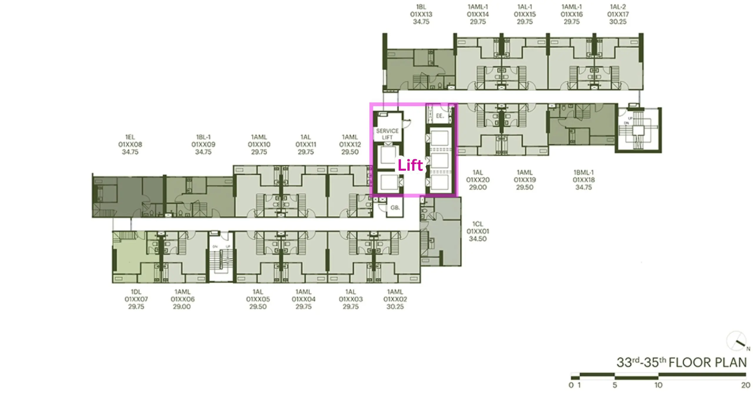 โดยที่ชั้น 5-32 จะเป็นห้องแบบ Simplex ฝ้าเพดานสูง 2.6 ม. และที่ชั้น 33-39 จะเป็นห้องแบบ Loft ฝ้าเพดานสูง 4.7 ม. และยังเป็นโครงการ Pet-allowed สามารถเลี้ยงสัตว์ได้ โดยจะอยู่ที่ชั้น 9-12