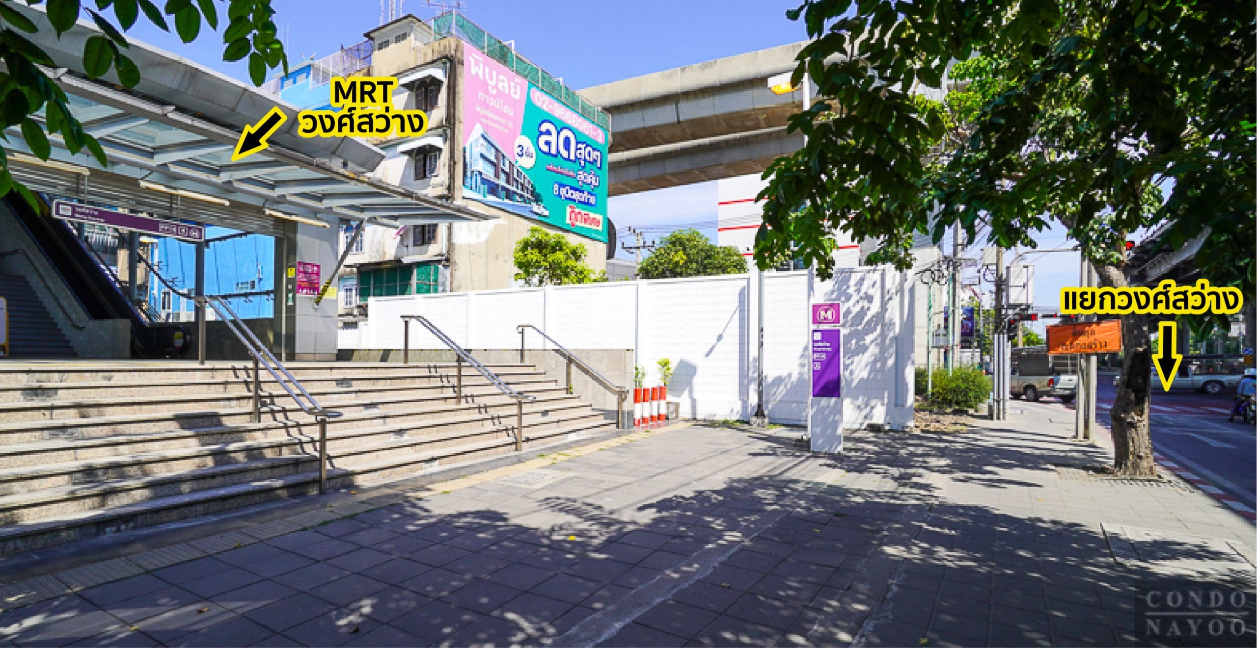 จากโครงการผมจะพาเดินไป MRT วงศ์สว่าง เพียง 240 ม.* มีทางเท้าเดินไปถึงทางขึ้นได้เลยสะดวกมาก
