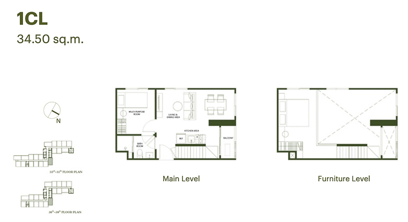 ชั้น 36-39 เป็นชั้นพักอาศัย และเป็นห้องแบบ Loft ฝ้าเพดานสูง 4.7 ม. มีจำนวนห้องพักชั้นละ 18 ยูนิต แบ่งเป็น 1 Bed 14 ยูนิต และ 1 Bed Plus 4 ยูนิต