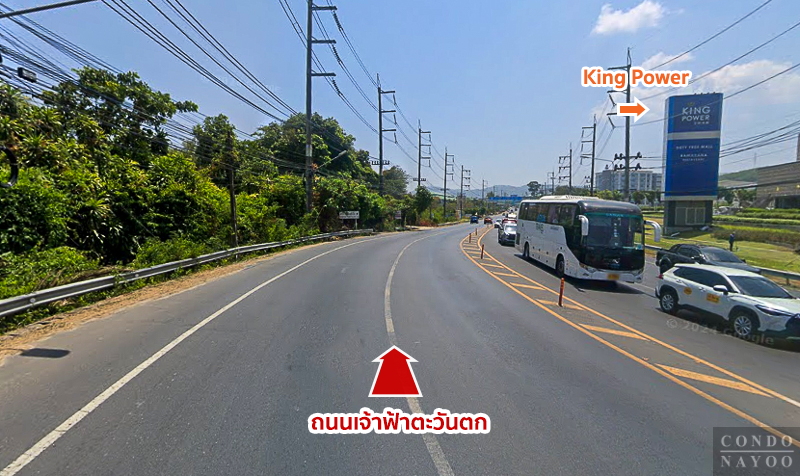 ถนนเจ้าฟ้าตะวันตก ⇒ ถนนขวาง ⇒ 650 ม.* ⇒ ถึงโครงการ The Clover ภูเก็ต