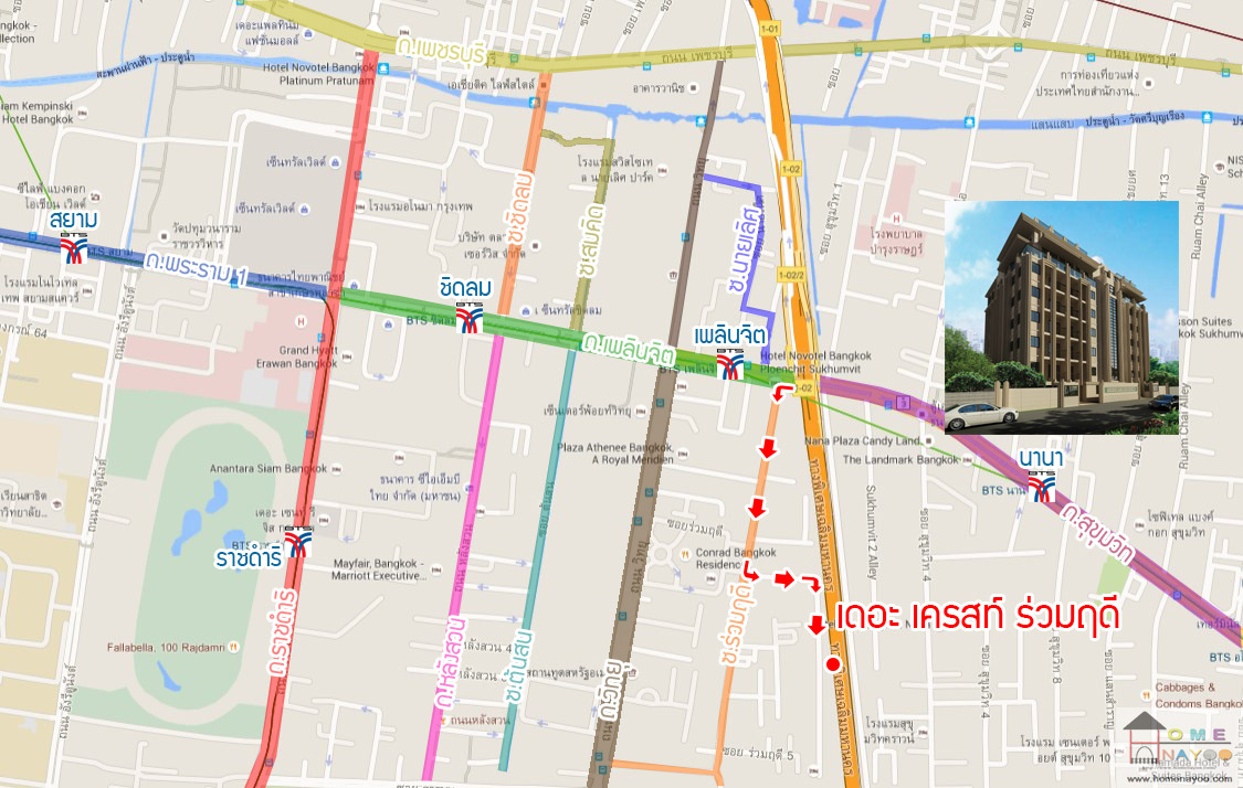 การเดินทาง ผมเริ่มจาก ถนน เพลินจิต BTS เพลินจิต > เลี้ยวซ้ายเข้า ซอย ร่วมฤดี > เลี้ยวซ้ายเข้าซอย ร่วมฤดี ซอย 2 > เดอะ เครสท์ ร่วมฤดี > *จากปากซอย 750 เมตร ถึงโครงการ (ร่วมฤดี ซอย 2)