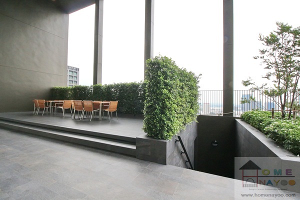 สิ่งอำนวยความสะดวก – Facility หลักอยู่บนชั้นดาดฟ้าของอาคารที่ชั้น 28 ประกอบด้วยสระว่ายน้ำแบบ Infinity Edge ระบบเกลือขนาด 5 x 20 เมตรพร้อมด้วยสระจากุซซี่แบบ Indoor ห้องฟิตเนสอุปกรณ์ครบครัน ห้องสตีม และ Sky lounge นอกจากนั้นยังมีสวนหย่อมที่อยู่ชั้นดาดฟ้าและอีกจุดที่ชั้น 6 ส่วนห้องสมุดจะไปอยู่ที่ชั้นล่างของอาคารใกล้ๆกับล็อบบี้ ระบบรักษาความปลอดภัยตามมาตรฐานผ่านเข้าออกลานจอดรถและโถงลิฟต์ด้วยระบบคีย์การ์ดและลิฟต์แบบล็อคชั้น ที่จอดรถให้มา 60% และลิฟต์มี 3 ตัวแยกลิฟต์ขนของต่างหากอีก 1 ตัว