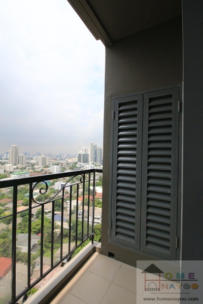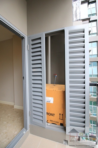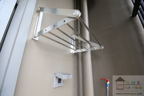 พื้นที่ระเบียงประมาณ 1.8 x 1.2 ม. มีบานพับอยู่สองด้านของระเบียง