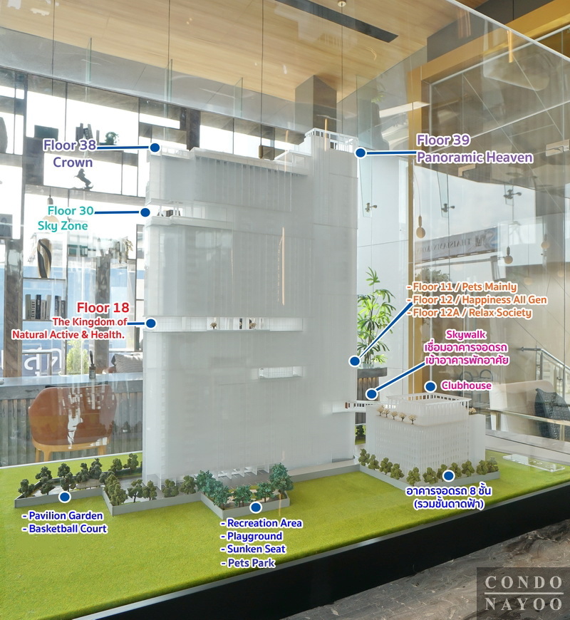 โอบล้อมด้วยธรรมชาติขนาดใหญ่ และให้ส่วนกลางมาเยอะถึง 60 โซนกิจกรรม* โดยมีการกระจายไว้ให้มากถึง 9 ชั้น อย่างเช่น Clubhouse, สระว่ายน้ำ 2 สระ, สระว่ายน้ำเด็ก, ห้องดูหนัง, ห้องประชุม มีโซน Pet Space, โซนเกม-โซนกีฬา ที่เยอะที่สุดในสุขสวัสดิ์, ห้องซ้อมดนตรี แห่งแรกในสุขสวัสดิ์, Fitness & Yoga Fly ลอยฟ้าที่มองวิวได้ 360 องศา