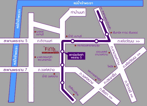 การเดินทางเริ่มจาก แยกวงศ์สว่าง (MRT วงศ์สว่าง) ⇒ ถนนกรุงเทพ-นนทบุรี ⇒ MRT แยกติวานนท์ เพียง 0 ม.* ⇒ The Fifth Avenue รัชดา-วงศ์สว่าง *Big C ติวานนท์ประมาณ 600 ม.*