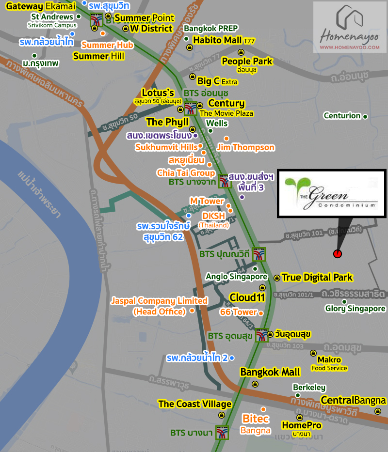 The Green สุขุมวิท 101 จาก กรีนสยาม ดีเวลลอปเม้นท์ ตั้งอยู่ในซอยสุขุมวิท 101 ถนนสุขุมวิท แขวงบางจาก เขตพระโขนง กทม.