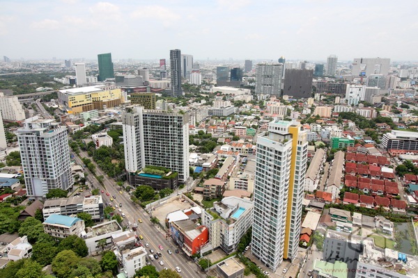 เงยหน้าดูภาพมุมสูงเห็นตัวอาคาร ดิ อิสสระ ลาดพร้าว