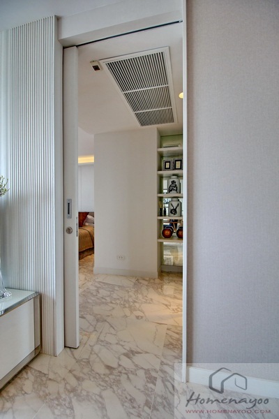 ออกมาจากห้องน้ำฝั่งตรงข้ามมีตู้เสื้อผ้าบิลท์อินบานปิดเลื่อน