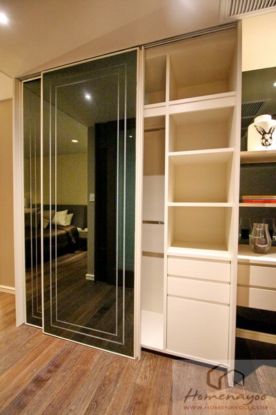 อีกด้านเป็นแนวตู้เสื้อผ้ายาว 3 ตอน