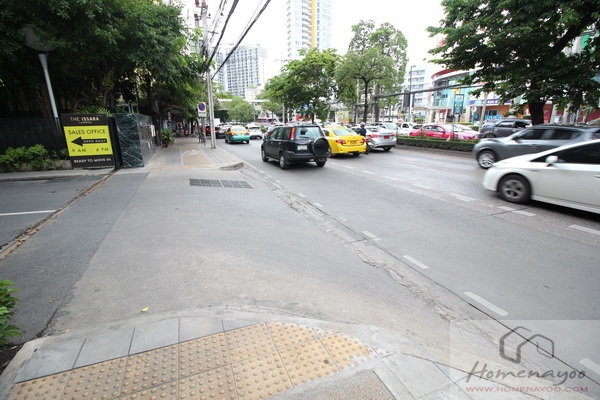 ฟุตบาทหน้าโครงการกว้างมีเลนจักรยานแยกให้สำหรับคนชอบปั่นจักรยาน