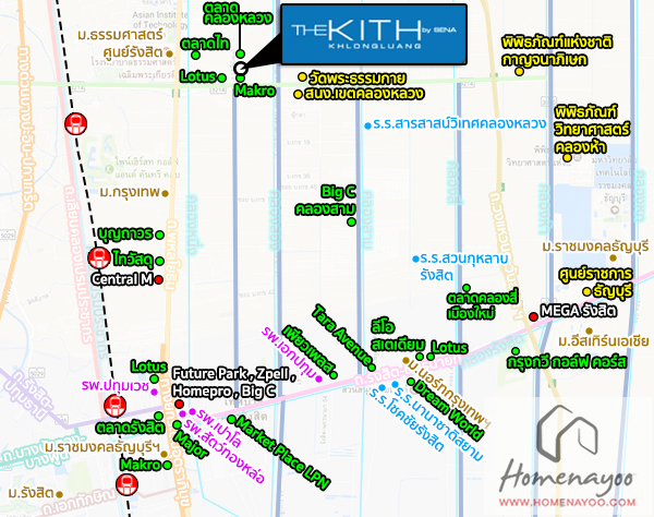 | สถานที่สำคัญใกล้เคียง | 1. ห้างสรรพสินค้าแม็คโคร สาขาคลองหลวง 2. ห้างสรรพสินค้าเทสโก้ โลตัส สาขานวนคร 3. มหาวิทยาลัยธรรมศาสตร์ รังสิต 4. มหาวิทยาลัยกรุงเทพ 5. วัดพระธรรมกาย |