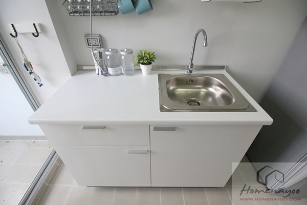 ระเบียงซักล้าง เครื่องใช้ไฟฟ้าที่ขาดอยู่เห็นจะเป็นแค่เครื่องซักผ้าเท่านั้น