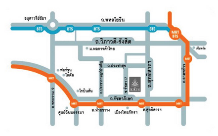 การเดินทาง เริ่มจาก ถนนรัชดาภิเษก แยกเทียมร่วมมิตร > แยกตลาดห้วยขวาง > ซอยรัชดาภิเษก 17 > — 180 ม. —> The Kris Extra 7 *ใกล้ซอยรัชดาภิเษก 13