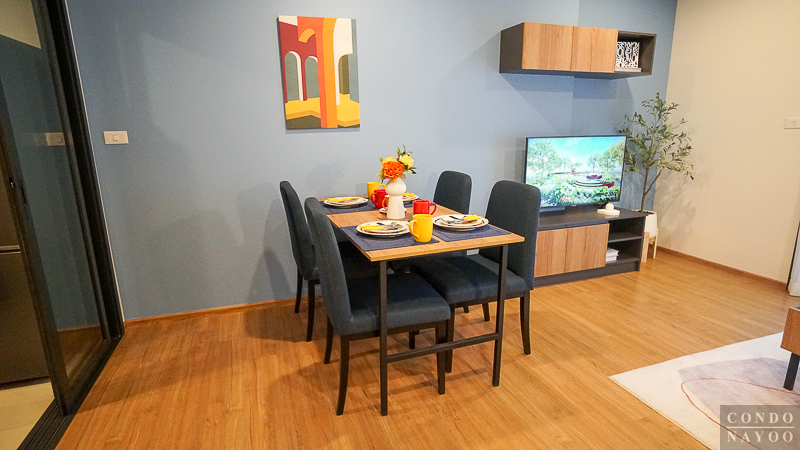 ตรงข้ามกันสามารถวางชั้นวางทีวี และจัดเป็นมุมทานอาหารได้