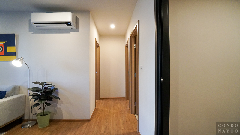 อีกด้านข้างห้องจะมีโถงทางเดินแนวยาว ที่ใช้เชื่อมต่อไปยังห้องนอนใหญ่ ห้องนอนรอง และห้องน้ำ 2