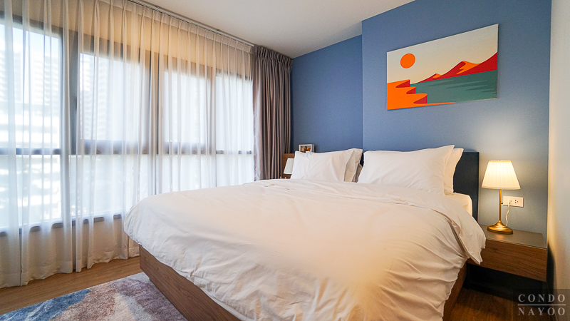เปิดประตูเข้ามาในห้อง ส่วนแรกจะเป็นห้องครัวปิด ถัดเข้าไปด้านในจะเป็นห้องนั่งเล่นและมุมทานอาหารขนาดใหญ่ และระเบียงพักผ่อนหน้ากว้างที่ด้านนอก ฝั่งขวาของห้องพักจะเป็นโถงทางเดิน ที่เชื่อมต่อกับห้องนอนใหญ่ พร้อมห้องน้ำในตัว, ห้องนอนรอง และห้องน้ำแบบ Double Access ที่เข้าออกจากโถงด้านนอก และเข้าออกจากห้องนอนรองได้