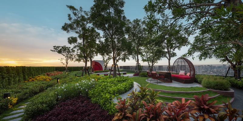 มี Multipurpose Sky Garden ที่เป็นสวนบนดาดฟ้าพร้อมจุดนั่งพักผ่อนที่สามารถชมวิวเมืองแบบเต็มตา ท่ามกลางต้นไม้น้อยใหญ่ที่เติมเต็มความเป็นธรรมชาติ มีสระว่ายน้ำดีไซน์พิเศษ ออกแบบให้มี Movement และไหลลื่น ให้ความรู้สึกที่ผ่อนคลายและทันสมัย
