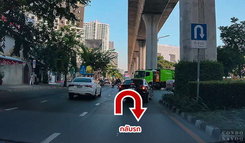 ขับตรงไปบนถนนภายในโครงการ โดยจะผ่าน 2 คอนโด คือ Abstracts พหลโยธิน พาร์ค และ The Line พหลโยธิน พาร์ค