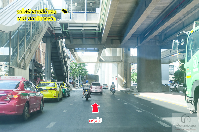 จาก BTS บางหว้าตรงไปตามถนนเพชรเกษมผ่านรถไฟฟ้าสายสีน้ำเงินส่วนต่อขยาย สถานีเพชรเกษม 48