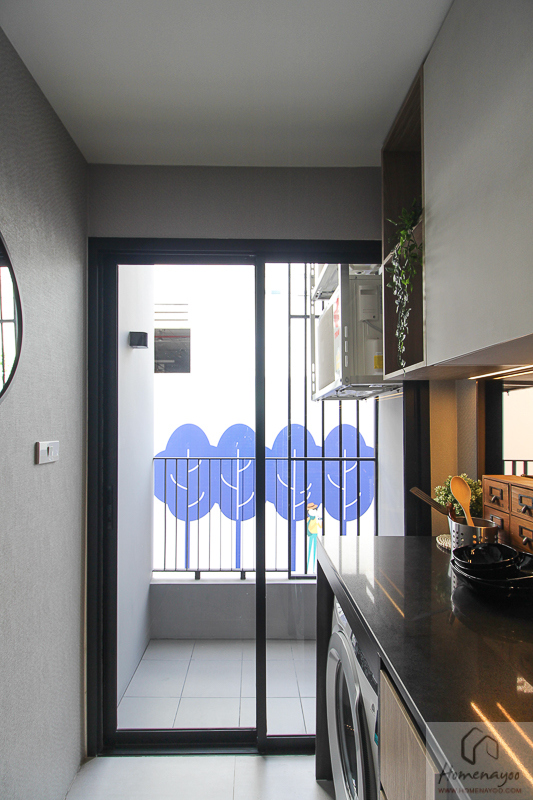 ห้องครัวกว้างสามารถวางเคาน์เตอร์ยาวขนานกับผนังห้อง เคาน์เตอร์ครัวตรงนี้ทางโครงการจะมีให้ตามที่เห็นทั้งหมดยกเว้นเครื่องใช้ไฟฟ้า ครัวติดกับระเบียงทำให้ห้องสว่างและสามารถเปิดประตูเพื่อถ่ายเทอากาศได้