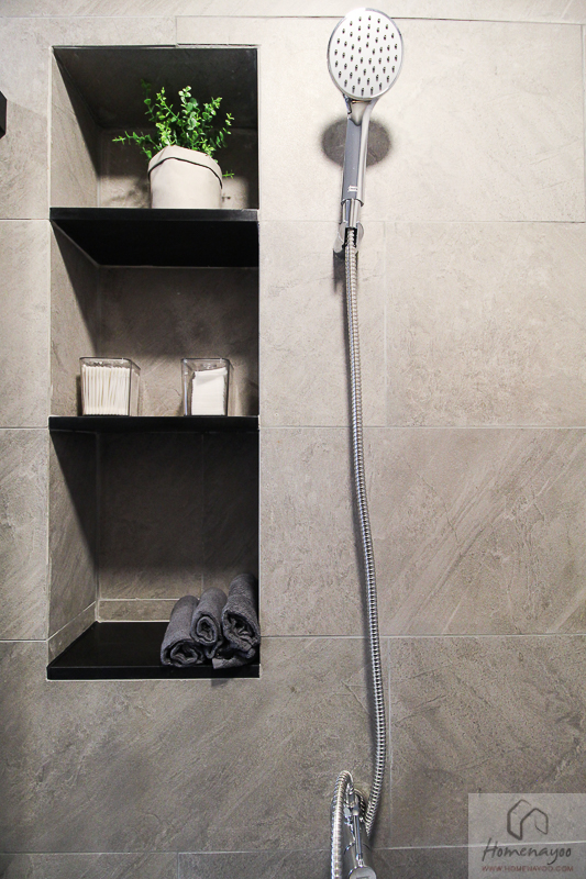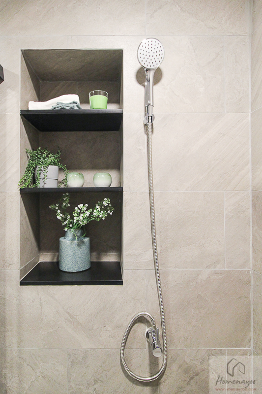 ฝักบัวและช่องวางของ สามารถวางของได้เยอะทั้งของตกแต่งและของใช้ในห้องน้ำ