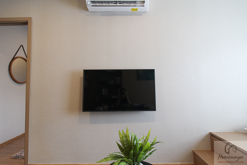 ตรงข้ามเป็นมุมวางชั้นวางทีวี หรือจะติดตั้งเป็นทีวีแขวนแบบนี้ก็ได้