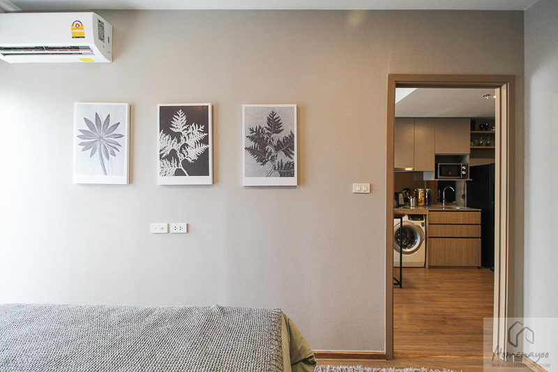 สำหรับห้องพักออกแบบมาได้เป็นสัดส่วน ขนาดห้องกว้าง พื้นที่ใช้สอยส่วนต่างๆมีขนาดพอดีสำหรับใช้งาน พื้นที่ครัวมีทั้งแบบครัวเปิดและครัวปิดขนาดเคาน์เตอร์กว้างพอเหมาะสำหรับบ้านที่ชอบทำอาหาร ห้องนอนกับห้องนั่งเล่นแบ่งพื้นที่เป็นสัดส่วน แต่กั้นด้วยประตูกระจกจึงทำให้ห้องดูไม่แคบลงแม้จะปิดประตูห้องนอน