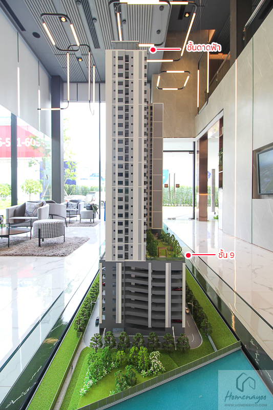 โมเดลจำลองอาคารในโครงการที่ชั้นดาดฟ้าของอาคาร A ค่ะ