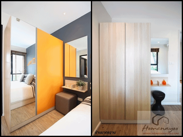 สำหรับตู้เสื้อผ้าจะได้ตามภาพด้านขวามือนะคะเป็นตู้ขนาดความกว้าง 1 เมตร