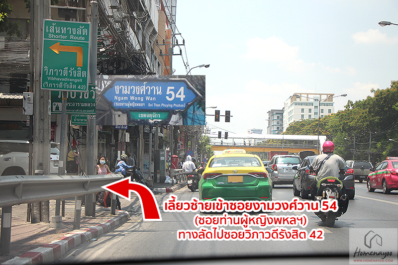 จากแยกขับตรงไปตามทางประมาณ 400 เมตร ให้เลี้ยวเข้าซ.งามวงศ์วาน 54 (ซ.ท่านผู้หญิงพหลฯ) ทางลัดไปซ.วิภาวดีรังสิต 42 ค่ะ