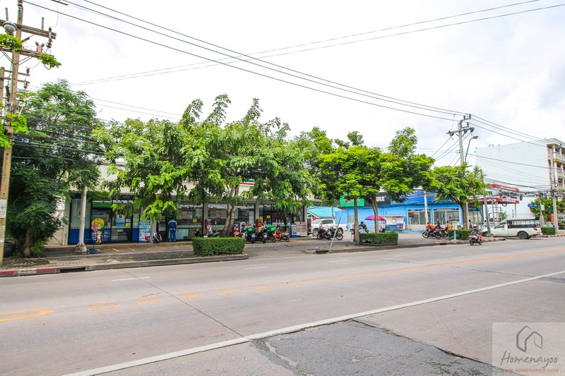 มองไปฝั่งตรงข้าม หรือ ฝั่งเดียวกับที่ดินโครงการ จะเป็นซอยอ่อนนุช 24 ที่หน้าปากซอยมี 7-Eleven เปิดอยู่อีก 1 สาขา ค่ะ