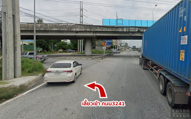 เลี้ยวซ้ายตรงทางแยกสะพานต่างระดับสวนเสือ เข้าถนนสาย 3241