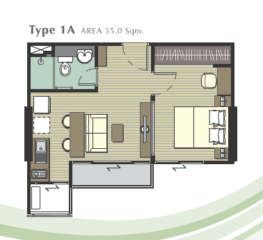 1 Bedroom Type 1 A : 35.0 ตร.ม.