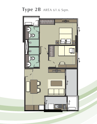 2 Bedroom Type 2B : 61.6 ตร.ม.