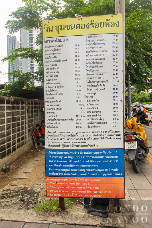 อัตราค่าบริการวินมอเตอร์ไซค์บริเวณตีนสะพานลอย ปากซอยสมเด็จพระเจ้าตากสิน 22