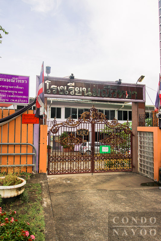 เดินเลยสะพานข้ามคลองสำเหร่มาก็จะเจอกับโรงเรียนมณีวิทยาด้านซ้ายมือค่ะ