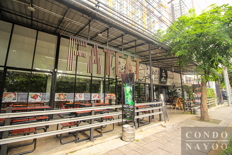 เดินเลยมาหน่อย ก่อนถึงโครงการของเรา Parkland ก็จะเป็น Fatcat ร้านอาหารและนั่งชิลล์อีกร้านค่ะ ช่วงค่ำๆจะคึกคัก