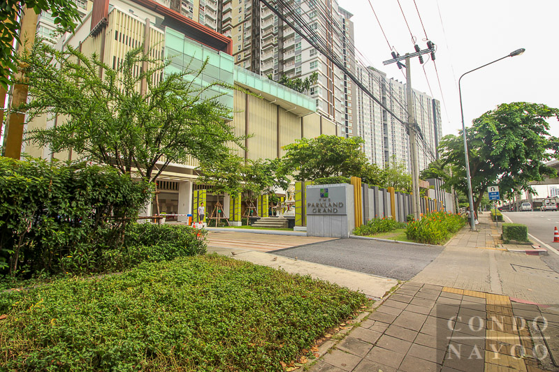 ซุ้มถนนทางเข้าโครงการ The Parkland Grand ค่อนข้างกว้างขวาง กว่าโครงการ The Parkland ค่ะ
