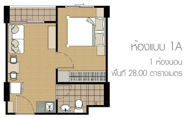 | ลักษณะห้องและขนาดห้อง | 1 Bed / 28-31 ตร.ม. |