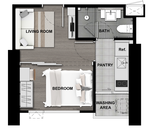 ฟังก์ชั่นของห้องพักแต่ละแบบ มีการแบ่งแยกการใช้งานเป็นสัดส่วนชัดเจน แม้จะเป็นห้องขนาดเล็กเริ่มต้น ก็จะมีฉากกั้นห้อง แยกแต่ละส่วนให้เช่นเดียวกัน รูปแบบของห้อง ลูกค้าต้องเข้าไปดูของจริง แล้วเลือกดูนะคะ ว่าแบบไหนที่ตอบโจทย์การใช้ชีวิตของเรามากที่สุด