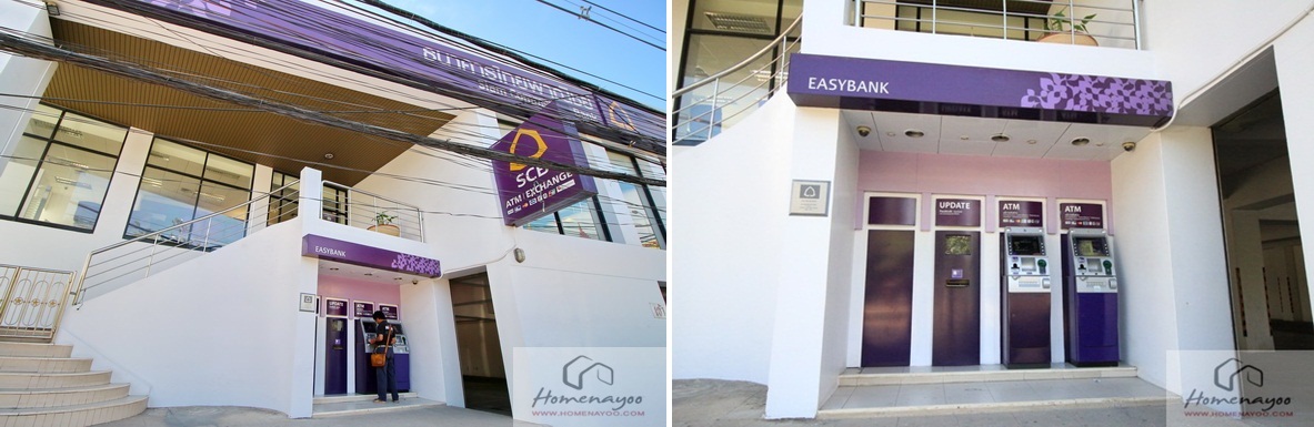 ซ้ายมือมีธนาคารไทยพาณิชย์ เปิดให้บริการ ชั้นล่างของธนาคารจะมีตู้ ATM และเครื่องอัพเดท Book Bank เปิดให้บริการตลอด 24 ชม.