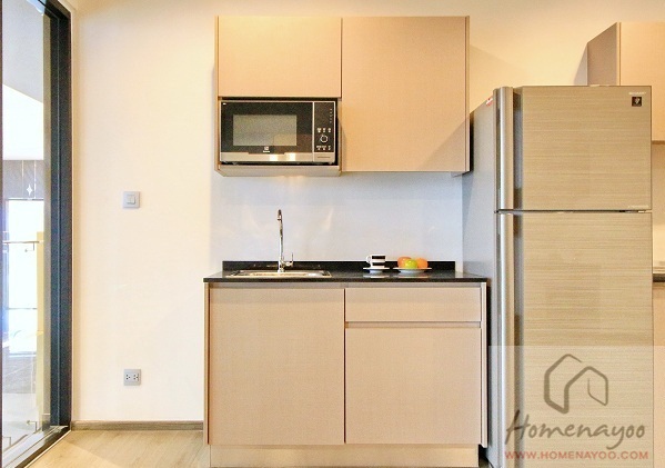 วัสดุและอุปกรณ์ : ห้องพักแบบ 1 ห้องนอน 1 ห้องน้ำ ขนาด 24, 29 และ 30 ตร.ม. ทางโครงการขายให้แบบ Fully Fitted (ห้องเปล่า) พร้อมเครื่องปรับอากาศ Toshiba 2 เครื่อง, เคาน์เตอร์ครัว โดย Modernform หรือเทียบเท่า,