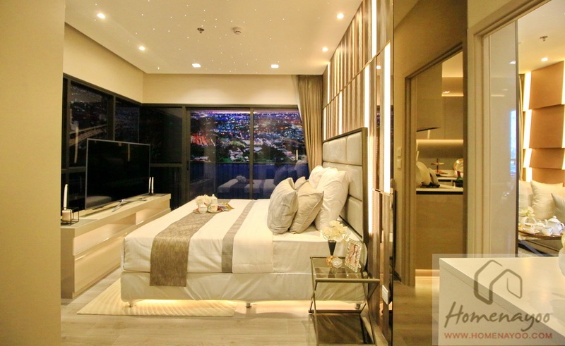 พาไปดูห้องนอนใหญ่กันต่อ ตำแหน่งของห้องนอนใหญ่จะอยู่ตรงกลาง ระหว่างมุมครัว และมุมพักผ่อน