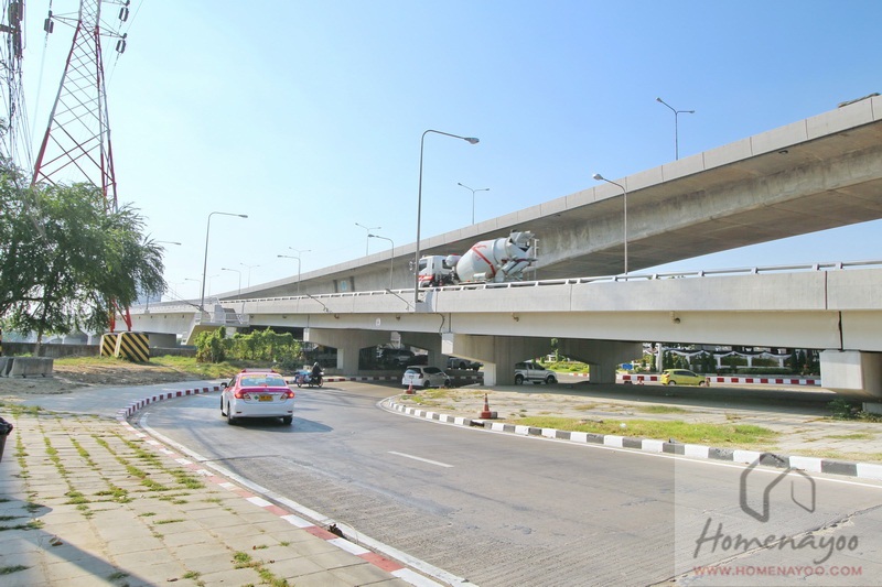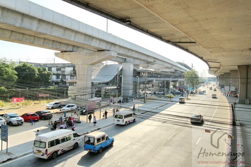 มองมาทางขวามือเจอกับสะพานลอย ที่เราจะใช้ข้ามถนนใหญ่ไปยังสถานีรถไฟฟ้ากัน