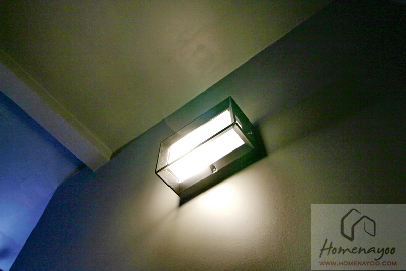 มองย้อนกลับออกมาฝั่งส่วนห้อง เพดานเหนือโถสุขภัณฑ์ติดพัดลมดูดอากาศของ Panasonic ให้ 1 ตัว