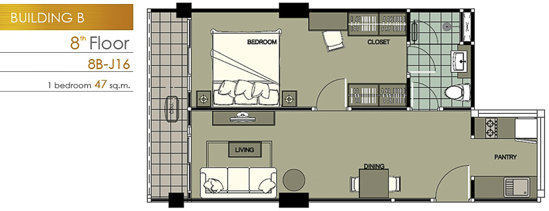 | ลักษณะห้องและขนาดห้อง | – 1 Bed : 33.00-47.00 ตร.ม. – 2 Bed : 43.00-52.00 ตร.ม. |