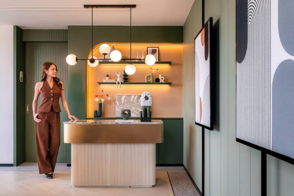 ส่วนหน้าตาของอาคารจะใช้โทนสีอ่อน อย่างสีขาว ตัดด้วยเส้นสายสีเทา ที่ดูเรียบง่าย แต่อบอุ่น ตามคอนเซ็ปต์ที่เป็นสไตล์ Tropical Modern ภายในอาคารจะตกแต่งให้มีความเป็นธรรมชาติ โดยจะสอดแทรกต้นไม้กระถาง เฟอร์นิเจอร์ และผนังในโทนสี Earth Tone คือ อบอุ่น ผ่อนคลายตั้งแต่ภายนอกและภายใน