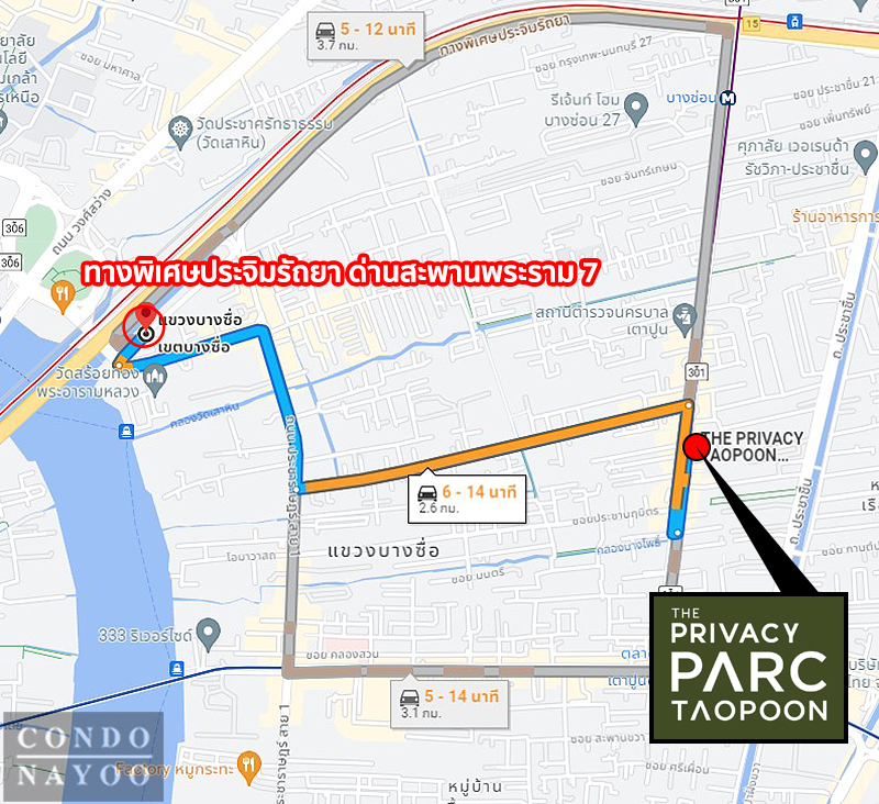 ⇒ ทำเลที่ตั้งโครงการ : The Privacy Parc Taopoon คอนโดใหม่จาก พฤกษา เรียลเอสเตท ตั้งอยู่บนทำเลศักยภาพย่านเตาปูน ที่ตั้งของโครงการอยู่ติดถนนใหญ่ ถนนกรุงเทพ-นนทบุรี ซึ่งเป็นที่ดินที่หาได้ยากแล้วในปัจจุบันค่ะ ตอบโจทย์ทุกการเดินทาง ใกล้เตาปูน อินเตอร์เชนจ์ เพียง 500 เมตร* จะไปโซนใกล้ ๆ อย่างอารีย์, พญาไท, ห้าแยกลาดพร้าว หรือออกไปอีกนิดแถว ๆ พระราม 9, อโศก, สีลม, สาทร ก็ใช้เวลาไม่เกิน 30 นาที
