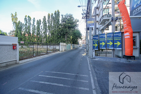 ก่อนจะเข้าไปดูในโครงการเดี๋ยวเราจะพาทุกคนเดินดูทำเลรอบๆกันสักหน่อย เริ่มที่ด้านหน้าโครงการเป็นบ้านพักอาศัย