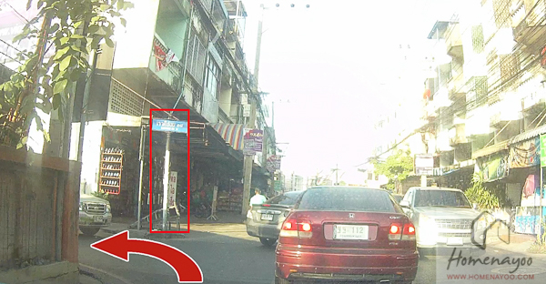 ขวามือจะเป็นปากซอยที่เราผ่านเข้ามาเมื่อสักครู่ เดี๋ยวเราจะเดินไปดูบริเวณปากซอยกันค่ะ